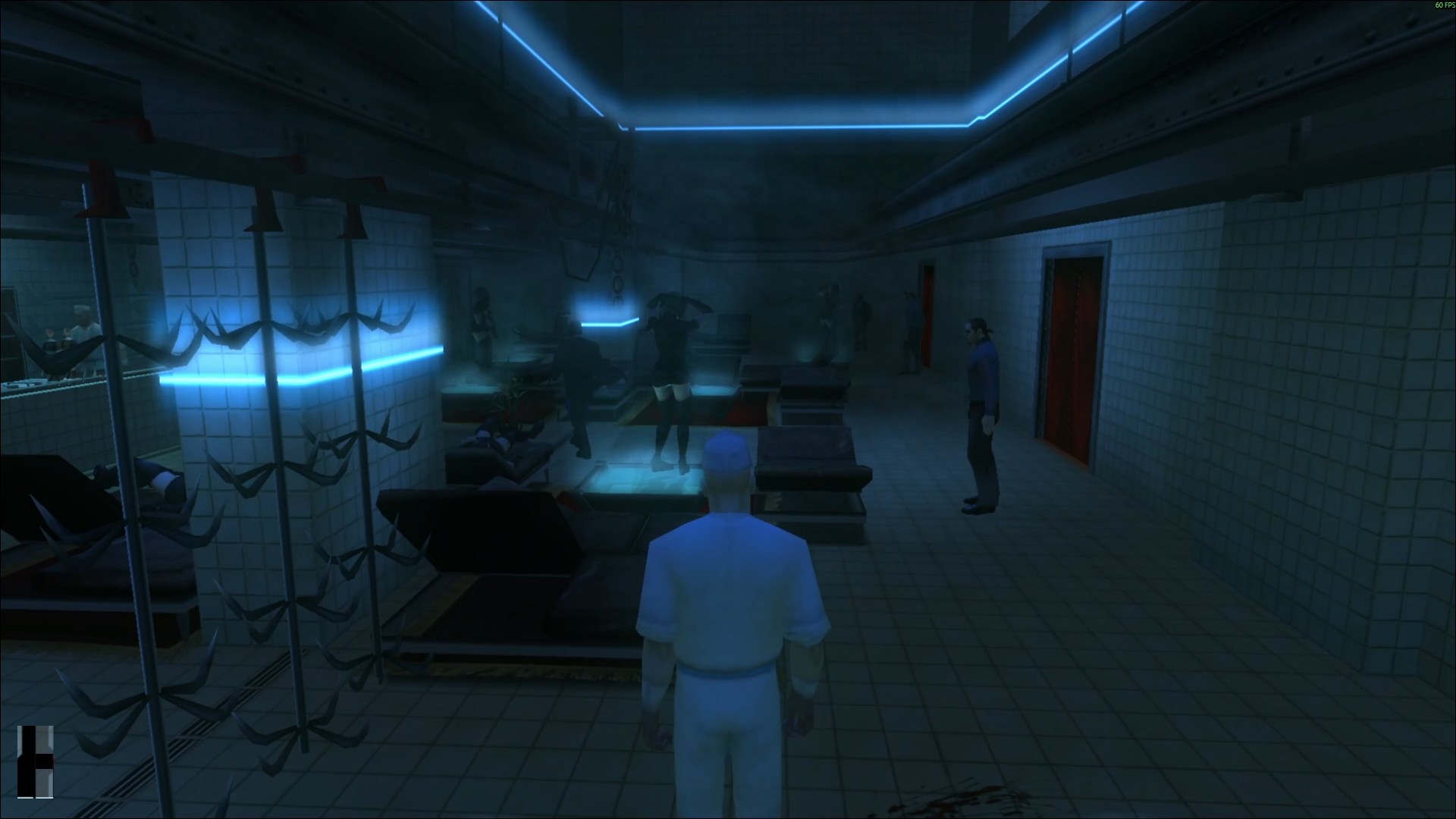 Vielleicht mag es sein, dass mir die Level einfacher gefallen sind, weil ich den ersten Teil erst mit einem Monat Abstand gespielt habe. Denn die neuen Level sind deutlich anspruchsvoller und schlichtweg interessanter. Gerade das zweite Level, eine super seltsame Drogen- und BDSM-Party in einer Metzgerei in Romänien, ist eines der Highlights der Spielereihe bisher, weil das neue kompakte Design hier effektiv genutzt wird, um ein ziemlich groteskes Labyrinth zu gestalten, in welchem man drei Ziele ausfindig machen muss. Genauso wie beim Level danach musste ich hier erstmal ein wenig knobbeln, bis ich eine Taktik gefunden hatte, die funktioniert und mich tatsächlich alle drei Ziele unentdeckt erledigen lassen würde. An der Villa in England habe ich besonders lange gehangen, weil die kleinen Räume bedeuteten, dass auch Wachen dicht beinander standen, wodurch es wenig Raum für Fehler gab. Hier musste ich mehr Experimentieren, Saves machen und laden, als in den Remake-Leveln, wo ich meist beim ersten oder zweiten Versuch durchkam. Die Hälfte meiner Spielzeit, mit 6 1/2 Stunden deutlich weniger als die beiden Vorgänger, bestand vermutlich nur aus den vier neuen Leveln.